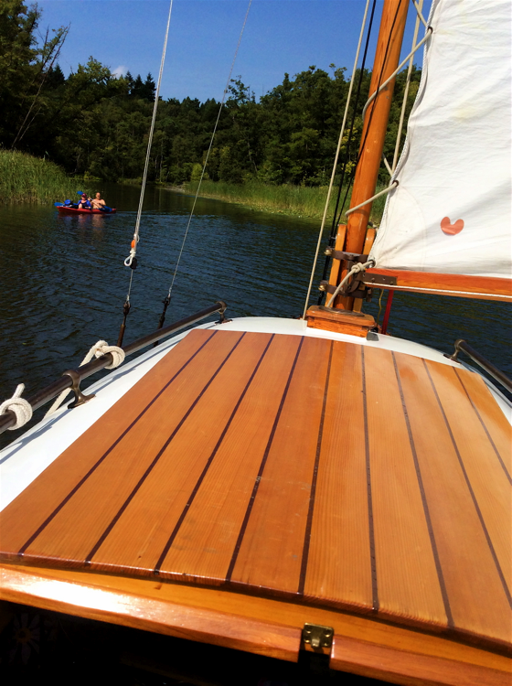 Bislang war alles graue Theorie. Wie liegen Schwerpunkt von Schwert und Segel? Wie ist der Gesamttrimm? Wie sind die Segeleigenschaften? Fühlen wir uns an Bord wohl?