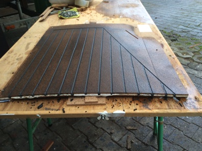 Die Einbauarbeiten der Sitze und Rückenlehnen dauerte gefühlt eine Ewigkeit. Alle Auflager und Seitenwangen der Bank waren extrem aus dem Winkel und aus dem Waage. Zum Teil musste ich keilförmig bis zu 3cm auffüttern, um die neuen Flächen anbringen zu können.