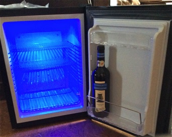 Ein kleiner, günstiger Hotelkühlschrank.