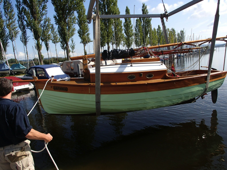 Ansonsten - das Boot bringt beladen 1 to auf die Waage, zum slipen für unseren A4 schon grenzwertig. Und bei sommerlichem Niedrigwasser an vielen Sliprampen wird es schwierig, dass unser Boot freischwimmen kann.