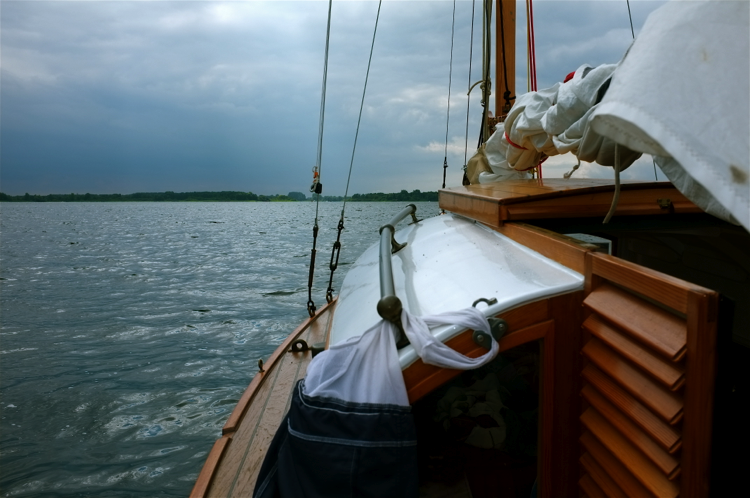 Bislang war alles graue Theorie. Wie liegen Schwerpunkt von Schwert und Segel? Wie ist der Gesamttrimm? Wie sind die Segeleigenschaften? Fühlen wir uns an Bord wohl?