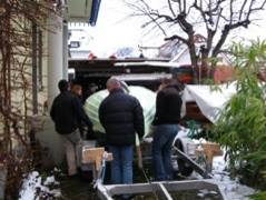 Eine Kiste Bier und genügend Freunde - ruckzuck lag das Schiff bereit für den weiteren Ausbau.