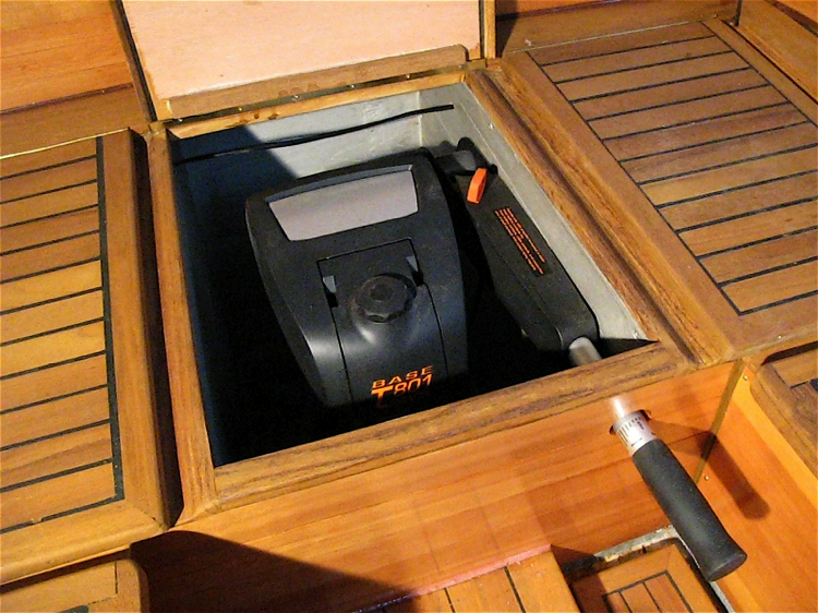 Dann ging es zum Jahreswechsel hin an die Elektrik, das Batterienmanagment und an den Umbau des AB's. Den Torqeedo 801 mit starrem Schaft kürzte ich auf das Maß unseres Schachtes ein. Dabei löste ich die Verkabelung zwischen Elektronikkopf und Motor - das Resultat war ein totaler Reset der Elektronik, nichts ging mehr. die Firma Torqeedo spielte mir diese wieder kostenlos auf - Danke.